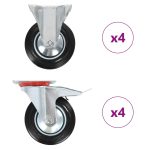 Deze wielen zijn gemaakt van rubber dat zich onderscheidt door een goede schok- en trillingsbestendigheid, waardoor deze wielen soepel en geruisloos rollen. Hun zachte oppervlakken beschermen je vloer effectief tegen krassen. Bovendien is het met zink gecoate ijzeren frame roestbestendig en draagt het bij aan de stevigheid en duurzaamheid van de wielen. De helft van deze zwenkwielen is uitgerust met remmen voor flexibel gebruik. Elk wiel heeft een draagvermogen van 150 kg.