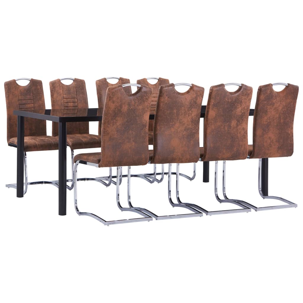 De tafel heeft een glad gehard glazen tafelblad dat eenvoudig te reinigen is met een vochtige doek. Het gepoedercoat metalen frame is stabiel en duurzaam, en draagt bij aan de massieve constructie van de tafel. De stoelen zijn bekleed met zacht kunstsuède en zijn dik gevoerd voor maximaal comfort. Het ergonomische ontwerp maakt de eetkamerstoel buitengewoon comfortabel om op te zitten. Bovendien maakt het verchroomd stalen frame de stoelen zeer stevig en stabiel. Elke stoel heeft een handgreep op de rugleuning waardoor de stoelen gemakkelijk te verplaatsen zijn. Deze eethoek is eenvoudig te monteren.