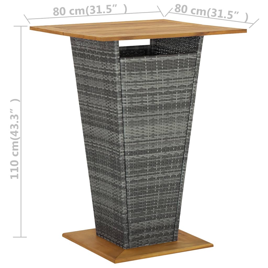 Deze bartafel heeft een gepoedercoat stalen frame dat is bedekt met waterbestendig PE-rattan, waardoor hij perfect is voor buitengebruik. Daarnaast zorgen het massief acaciahouten tafelblad en onderstel voor extra stevigheid en stabiliteit. De barkrukken hebben een sterke, stalen frameconstructie en zijn gemaakt van weerbestendig PE-rattan, waardoor ze stabiel en gemakkelijk te verplaatsen zijn. Het kussen en de voetensteun maken de krukken extra comfortabel.