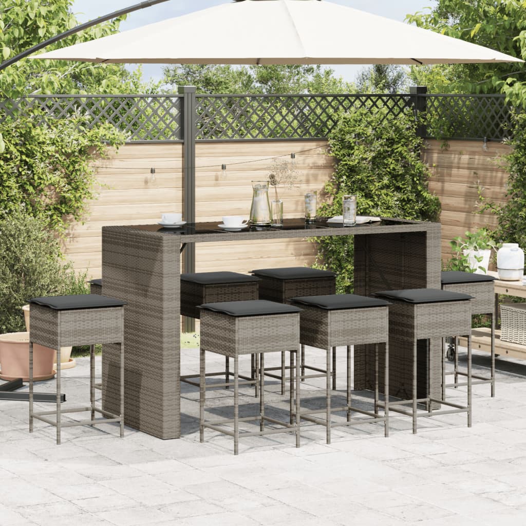 9-delige Tuinbarset met kussens poly rattan grijs