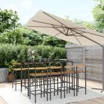 9-delige Tuinbarset poly rattan en massief acaciahout zwart