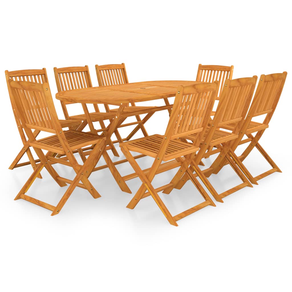 Deze tuinset is gemaakt van hoogwaardig acaciahout, een tropisch hardhout dat weerbestendig en zeer duurzaam is. De olieafwerking is eenvoudig schoon te maken met een vochtige doek. De tafel en stoelen kunnen worden ingeklapt, zodat ze ruimte besparen wanneer ze niet worden gebruikt.