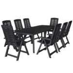 De tuinset is gemaakt van duurzaam kunststof, waardoor de tafel en stoelen weerbestendig en gemakkelijk te reinigen zijn. Deze kunststof eetset is lichtgewicht en gemakkelijk te verplaatsen. De tuintafel heeft een parasolopening zodat je een parasol kunt plaatsen en koel kunt blijven in de schaduw. De rugleuningen van de stoelen hebben 4 leunstanden, zodat je altijd de meest comfortabele positie kunt vinden. De stoelen kunnen worden ingeklapt om ruimte te besparen wanneer ze niet worden gebruikt.