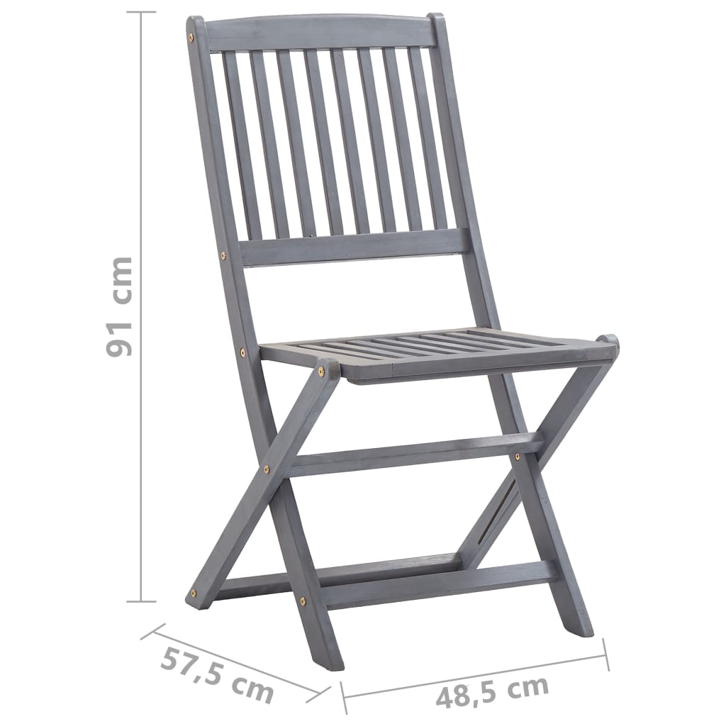 Zowel de tafel als de stoelen zijn gemaakt van massief acaciahout met greywash afwerking. Ze zijn weerbestendig, duurzaam en gemakkelijk schoon te maken met een vochtige doek. Door de stevige houten structuur is deze set zeer stabiel. Hij biedt je comfort en veel gemak om tijd door te brengen met familie en vrienden. Bovendien kunnen de tafel en stoelen gemakkelijk worden ingeklapt voor eenvoudige opslag en transport wanneer ze niet worden gebruikt.