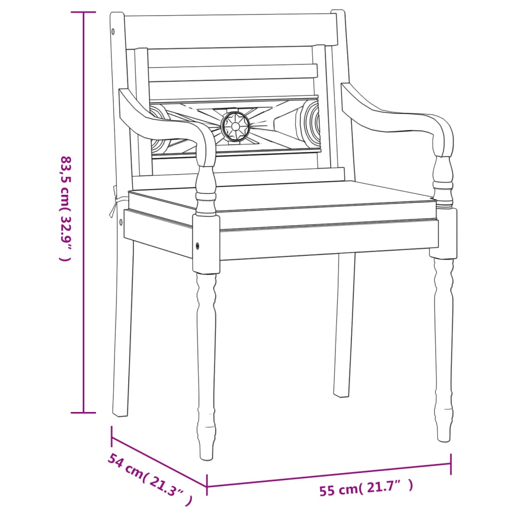 Geniet van een kopje thee of een heerlijk diner in je tuin met deze houten Batavia tuinset!Met delicate, gebogen armleuningen en decoratief houtsnijwerk wordt deze tuinmeubelset het middelpunt van je tuin en terras!