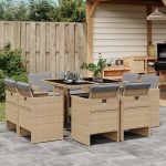 9-delige Tuinset met kussens poly rattan gemengd beige