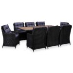 Dankzij de poly rattan zijn het zitgedeelte en de rugleuning van de stoelen waterbestendig en gemakkelijk te reinigen. Het stalen frame zorgt ervoor dat de meubels aanzienlijk stabiel en duurzaam zijn. Het massief acaciahouten blad straalt een rustieke en retro stijl uit.