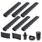 Deze complete set bestaat uit 6 afvoerkanalen met kunststof roosters, 1 filtersysteem, 1 bodemafvoeraansluiting en 2 einddoppen. Hij is een perfecte oplossing voor het verzamelen en afvoeren van overtollig water van opritten, patio’s en andere buitenruimtes.