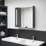 Badkamerkast met spiegel en LED 62x14x60 cm glanzend grijs