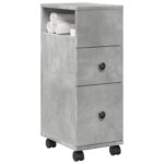 Badkamerkast smal met wielen bewerkt hout betongrijs