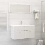 Deze trendy badkamermeubelset, bestaande uit een wastafelkast, een inbouwwastafel en een spiegel, past perfect bij je badkamer of wasruimte. Hij heeft een opvallende, opgeruimde uitstraling.