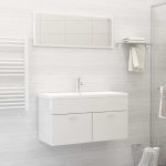 Deze trendy badkamermeubelset, bestaande uit een wastafelkast, een inbouwwastafel en een spiegel, past perfect bij je badkamer of wasruimte. Hij heeft een opvallende, opgeruimde uitstraling.