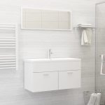 Deze trendy badkamermeubelset, bestaande uit een wastafelkast, een inbouwwastafel en een spiegel, past perfect bij je badkamer of wasruimte. Hij heeft een opvallende, opgeruimde uitstraling.