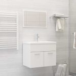 Deze trendy badkamermeubelset, bestaande uit een wastafelkast, een inbouwwastafel en een spiegel, past perfect bij je badkamer of wasruimte. Hij heeft een opvallende, opgeruimde uitstraling.