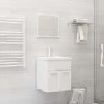Deze trendy badkamermeubelset, bestaande uit een wastafelkast, een inbouwwastafel en een spiegel, past perfect bij je badkamer of wasruimte. Hij heeft een opvallende, opgeruimde uitstraling.