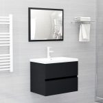 De wastafelkast is gemaakt van bewerkt hout, waardoor hij stevig en stabiel is. De kast heeft 1 lade en biedt voldoende ruimte om spullen in je badkamer op te bergen. Hij past perfect onder de wastafel en maakt opbergen in de badkamer heel handig. De wastafel is gemaakt van keramiek en dient niet alleen als product voor dagelijks gebruik, maar ook als versiering in je leefruimte. Dankzij zijn trendy en eigentijdse ontwerp past deze wastafel in elk interieur. De overloop zorgt ervoor dat de bak nooit kan overlopen. Het geglazuurde oppervlak geeft een modern en elegant tintje aan deze wastafel. De spiegel geeft je interieur een prachtige uitstraling. Deze set is gemakkelijk schoon te maken met een vochtige doek.