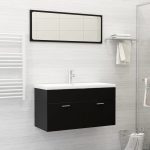Deze trendy badkamermeubelset, bestaande uit een wastafelkast, een inbouwwastafel en een spiegel, past perfect bij je badkamer of wasruimte. Hij heeft een opvallende, opgeruimde uitstraling.