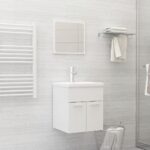 Deze trendy badkamermeubelset, bestaande uit een wastafelkast, een inbouwwastafel en een spiegel, past perfect bij je badkamer of wasruimte. Hij heeft een opvallende, opgeruimde uitstraling.