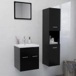 Met deze stijlvolle badkamermeubelset kan je extra opbergruimte in je badkamer creëren. Door de strakke lijnen en het strakke ontwerp past hij perfect in je badkamer.