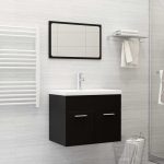 Deze trendy badkamermeubelset, bestaande uit een wastafelkast, een inbouwwastafel en een spiegel, past perfect bij je badkamer of wasruimte. Hij heeft een opvallende, opgeruimde uitstraling.