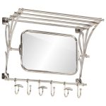 Dit bagagerek met kleerhangers en spiegel heeft een nikkelafwerking en is een ideale keuze voor je badkamer, slaapkamer of garderobe.