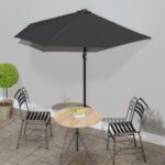 Het parasoldoek is gemaakt van uv-beschermend en anti-vervagend polyester waardoor het je optimale bescherming tegen de zon biedt en het gemakkelijk schoon te maken is. De paaldiameter is 38 mm waardoor de paal in een voet of in het midden van een tafel geplaatst kan worden. Het halfronde ontwerp draagt bij aan de unieke charme van de parasol. De sterke aluminium paal en de 5 stevige stalen baleinen maken de parasol zeer stabiel en duurzaam. De tuinparasol kan eenvoudig geopend en gesloten worden dankzij het zwengelmechanisme.