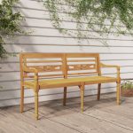 Voeg een vleugje elegantie toe aan je buitenruimte met dit teakhouten Batavia bankje! Het bankje heeft verfijnde, gebogen armleuningen en decoratief houtsnijwerk op de rugleuning en de poten.