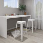 Deze barkruk is gemaakt van metaal met een verfafwerking, waardoor hij sterk en duurzaam is. De voetensteun en de versterkte kruisstang onder de zitting verhogen de stabiliteit. Wanneer hij niet in gebruik is, kan deze barkruk gestapeld worden voor gemakkelijke opslag, wat ideaal is voor beperkte ruimtes.