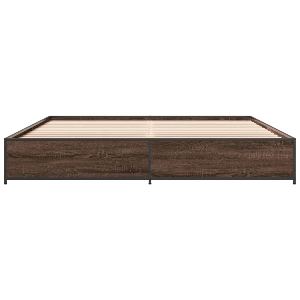 Bedframe bewerkt hout metaal bruin eikenkleur 180x200 cm