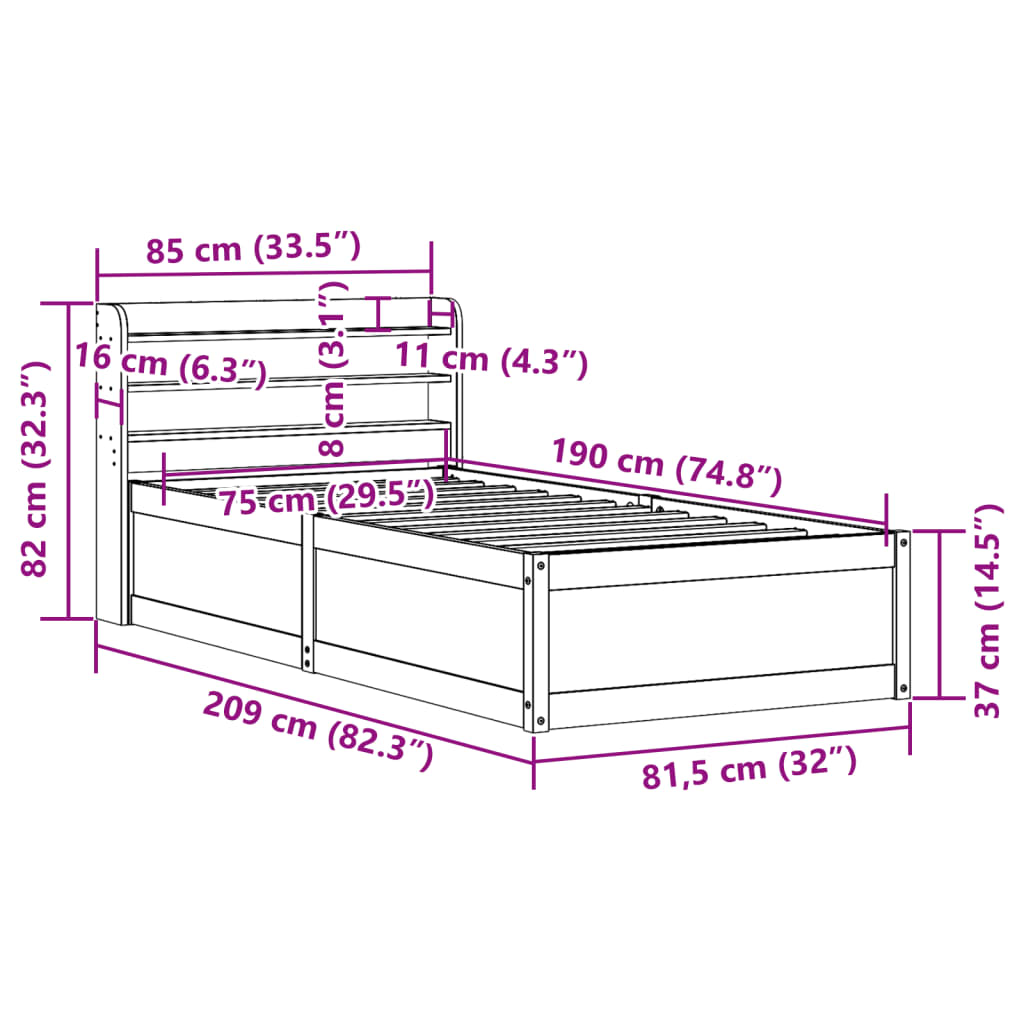 Bedframe met hoofdbord massief grenenhout wasbruin 75×190 cm