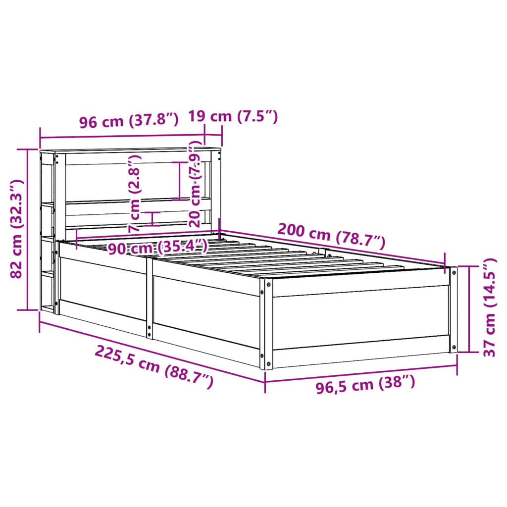 Bedframe met hoofdbord massief grenenhout wasbruin 90×200 cm