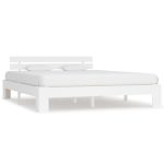 Bedframe met hoofdbord massief grenenhout wit 160×200 cm