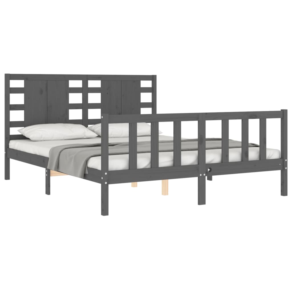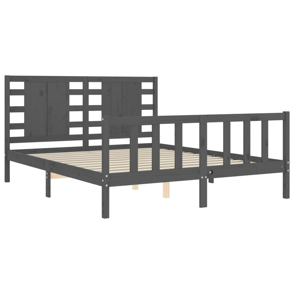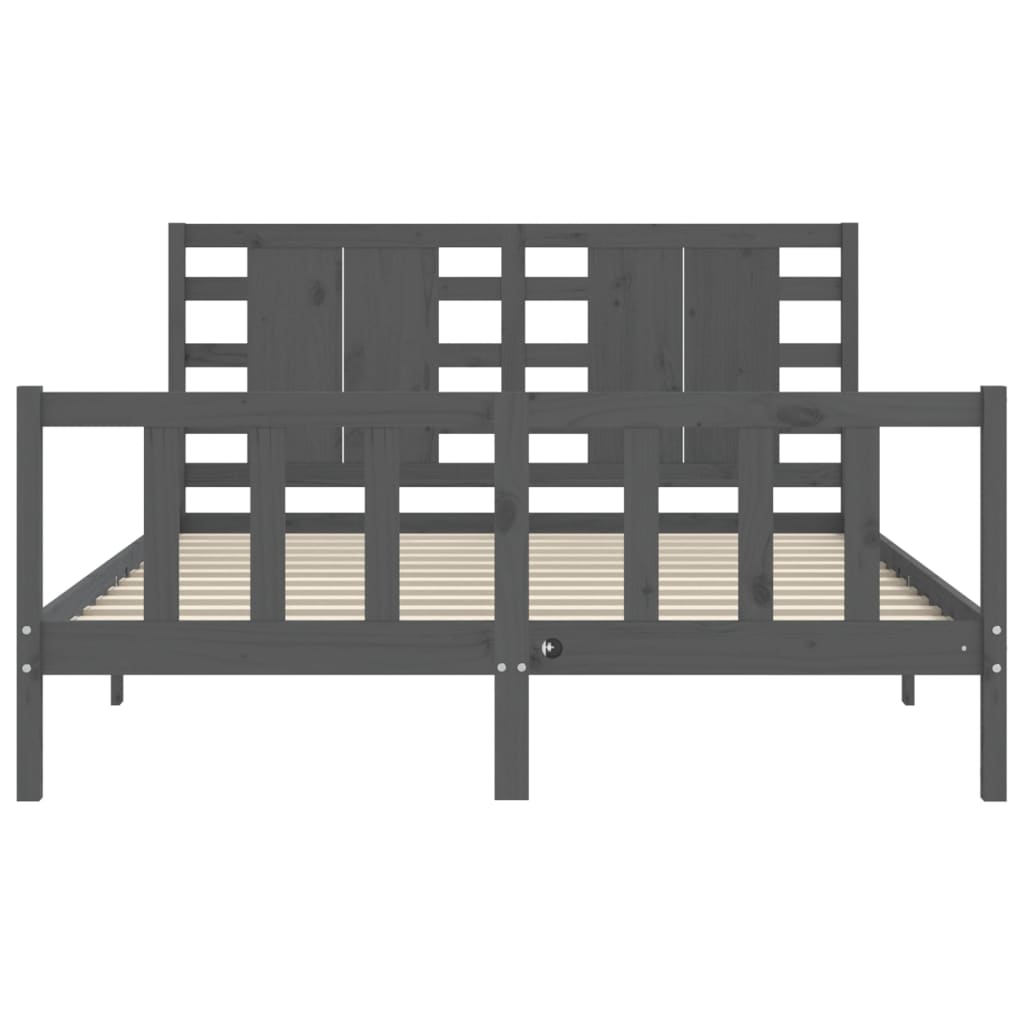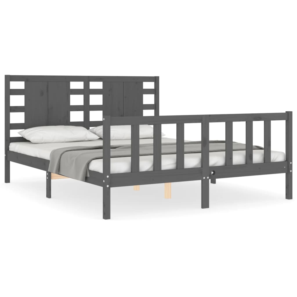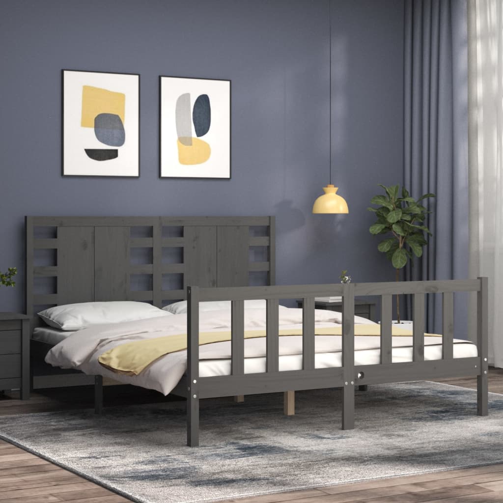 Bedframe met hoofdbord massief hout grijs