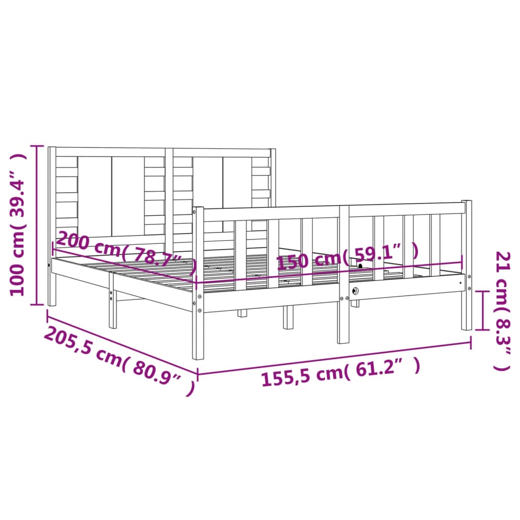 • Totale afmetingen bed: 205,5 x 155,5 x 100 cm (L x B x H)