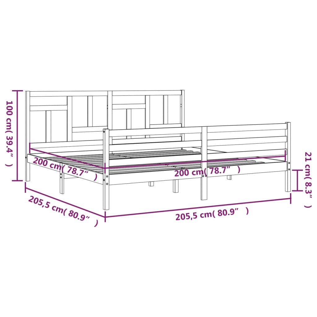 Bedframe met hoofdbord massief hout grijs 200×200 cm
