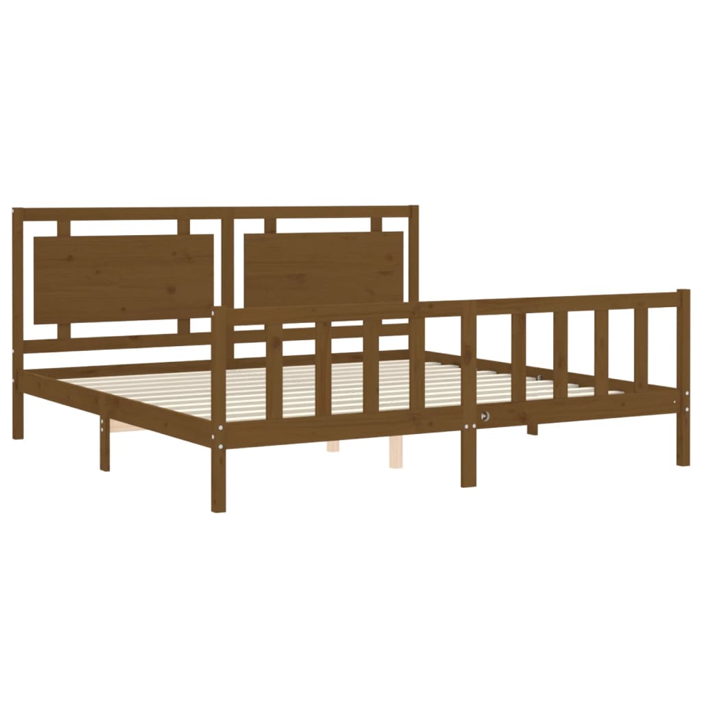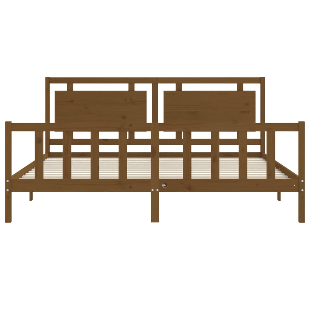 Bedframe met hoofdbord massief hout honingbruin 200x200 cm