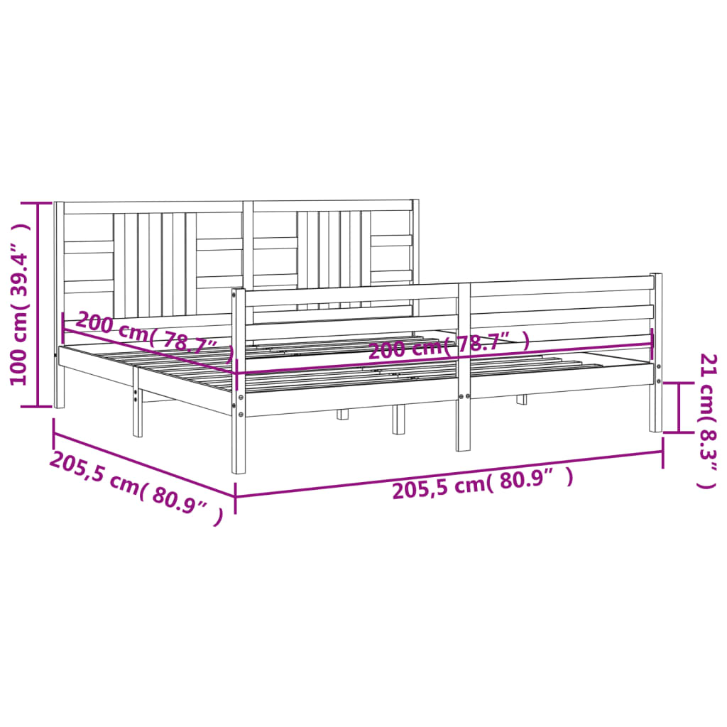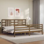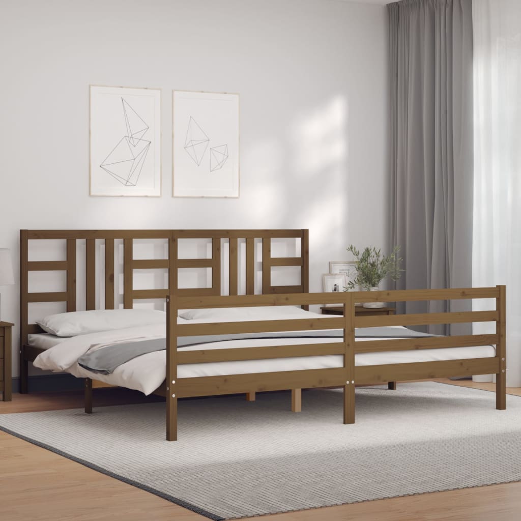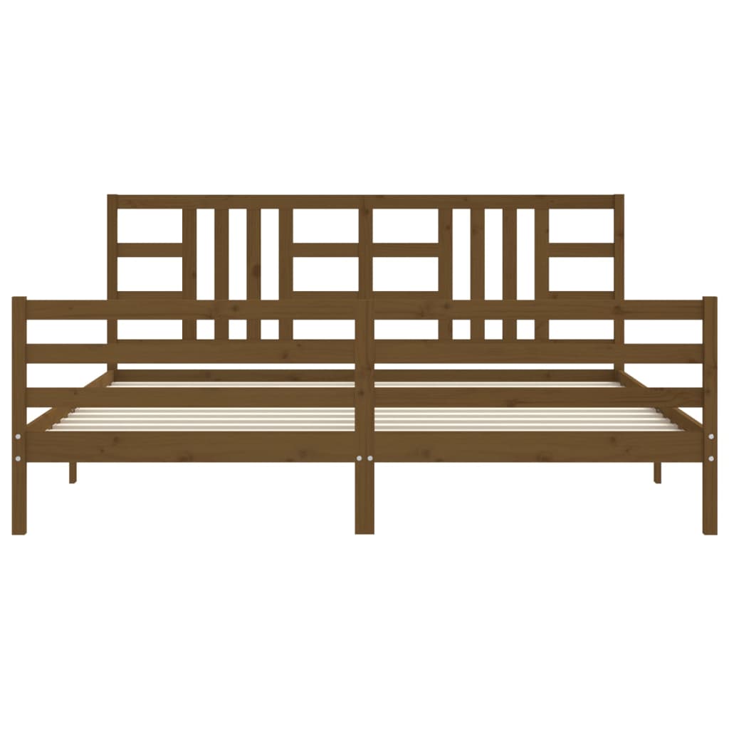 Bedframe met hoofdbord massief hout honingbruin 200x200 cm