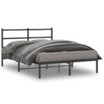 Bedframe met hoofdbord metaal zwart 140×200 cm