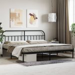 Bedframe met hoofdbord metaal zwart 193×203 cm