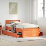 Bedframe met hoofdbord zonder matras hout wasbruin 90×190 cm
