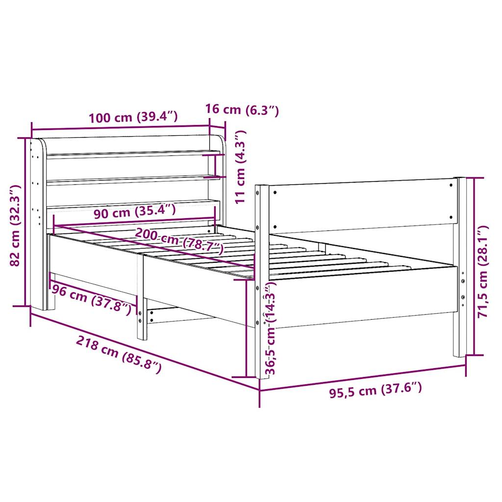 Bedframe zonder matras massief grenenhout wasbruin 90×200 cm