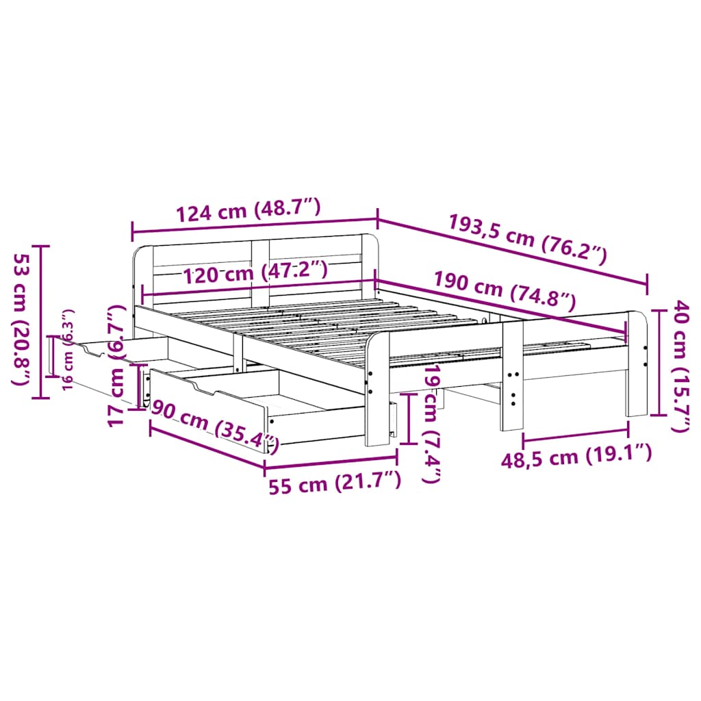 Bedframe zonder matras massief grenenhout wit 120x190 cm