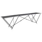 De schragentafel heeft een frame dat is gemaakt van sterk en lichtgewicht aluminium en een gemakkelijk te reinigen zwart MDF-tafelblad. De tafel heeft een draagvermogen van 30 kg en is voorzien van W-vormige stalen buispoten voor sterkte en duurzaamheid. Hij kan eenvoudig worden ingeklapt voor opslag en transport wanneer je hem niet gebruikt.