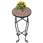 Deze plantentafel heeft een weerbestendig mozaïeken tafelblad en elegante gebogen poten. Hij wordt zeker een blikvanger in je tuin, balkon, terras, enz.