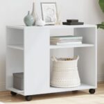 Bijzettafel met wieltjes 70x35x60 cm bewerkt hout wit