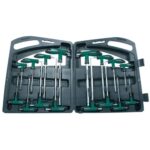 Levering bevat 16 delen: 8 zeskants T-grepen met kogellager aan de lange zijde: 2/2,5/3/4/5/6/8/10 mm en 8 torx T-grepen (torx en resistorx): T10/T15/T20/T25/T30/T40/T45/T50