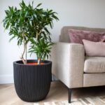 De textuur van de 35 cm Groove bloempot van Capi is geïnspireerd op de verticale groeven in rotsen en bergen, die ontstaan door natuurlijke veranderingen in de loop der jaren – het natuurlijke proces waardoor Capi de solide lijnen van deze getextureerde bloempot ontwikkelde.