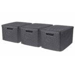 Deze Style boxenset van Curver wordt geleverd als een set van 3. De decoratieve rattan textuur geeft je interieur een unieke uitstraling. De boxen hebben ook een handig deksel, zodat je al je spullen uit het zicht en stofvrij kunt opbergen. Bovendien heeft elke opbergbox handige handvatten en zijn de boxen stapelbaar met en zonder deksel.