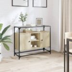 Be the first to review “Dressoir met glazen blad 98x35x81 cm hout sonoma eikenkleurig” Reactie annuleren