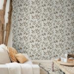 Het duurzame behang heeft een bladpatroon en lijkt licht beschadigd waardoor het een mooi effect heeft. Het kan droog worden verwijderd zonder je muur te beschadigen.